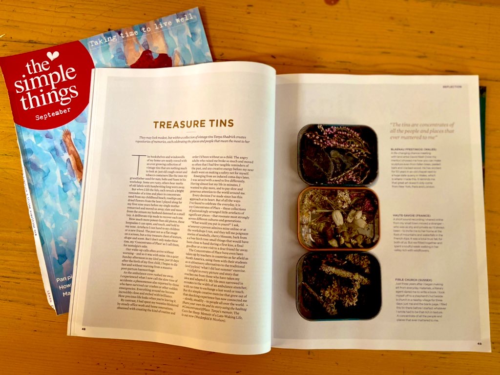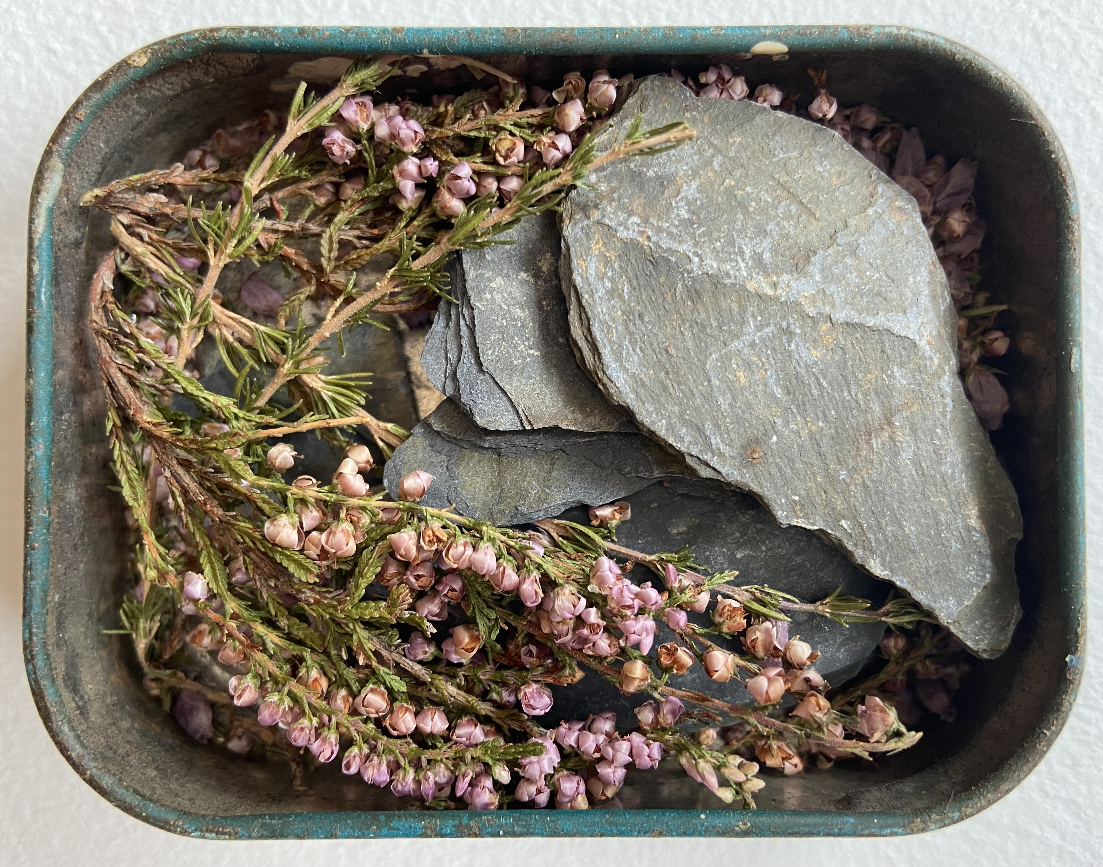 Tanya Shadrick: My mentor is the sculptor David Nash, whose work returns after each exhibition to the Welsh chapel that has been his home and studio for the last 50 years. A chance event brought him and I into orbit, just as I began my second life as a writer, and I now get to stay among his huge carved pieces most summers, which is such a deep pleasure and privilege. And so the tin filled with slate and heather from there is a particular treasure.